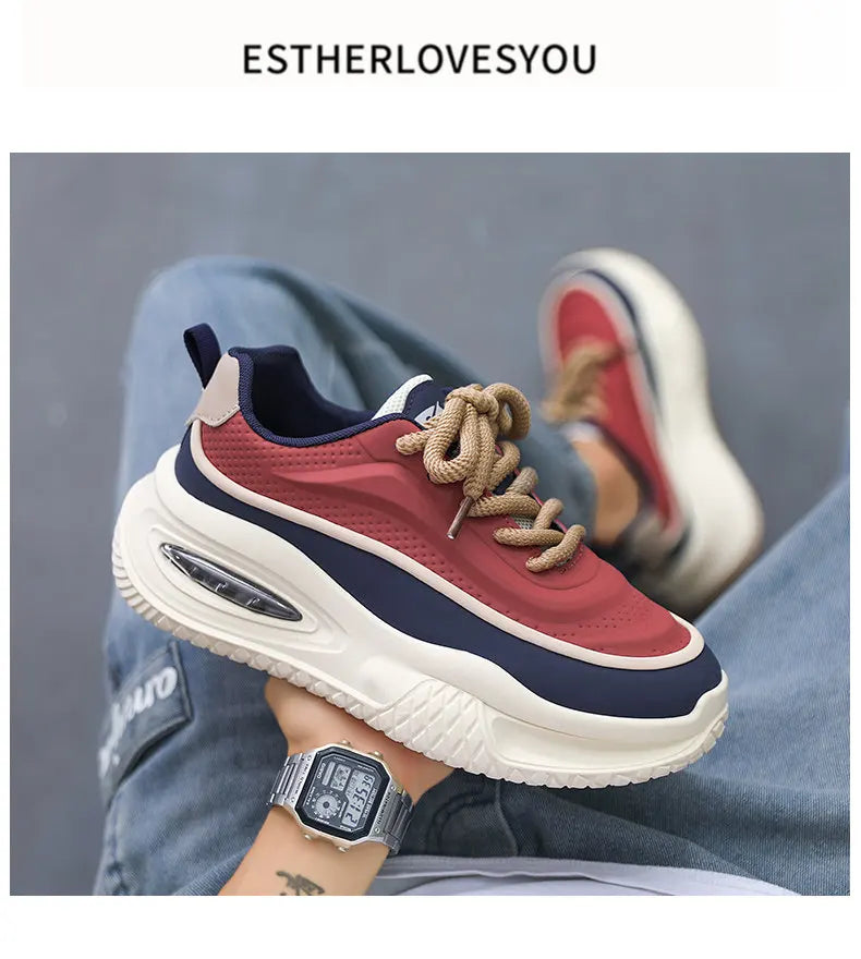 Men's casual sports shoes, fashionable thick soled skateboarding shoes, trendy and comfortable men's shoes suitable for outdoor